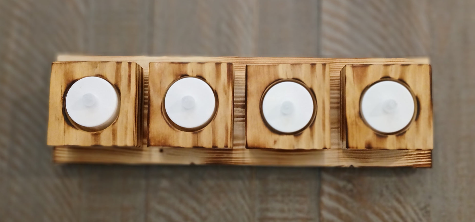 Bring a touch of natural elegance to any room with our handcrafted wood tea light holder. Each holder is meticulously made from Yellow pine, showcasing the unique grain and natural beauty of the timber. Rustic Yellow pine, charred finish.